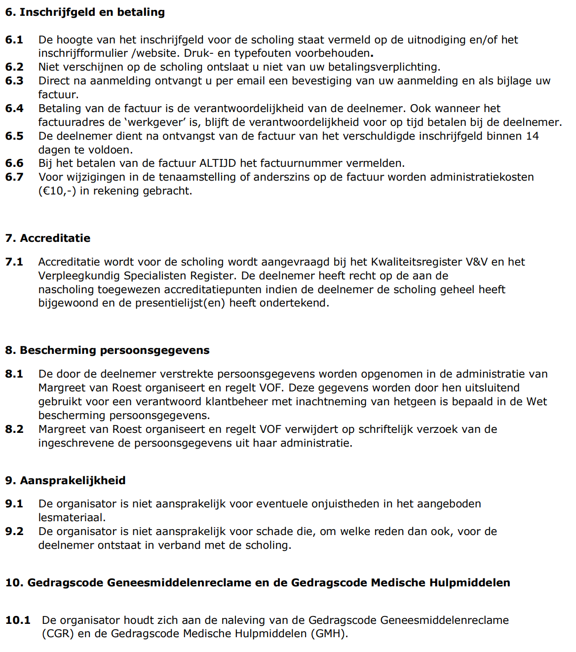 Algemene Voorwaarden nascholing SLAAP